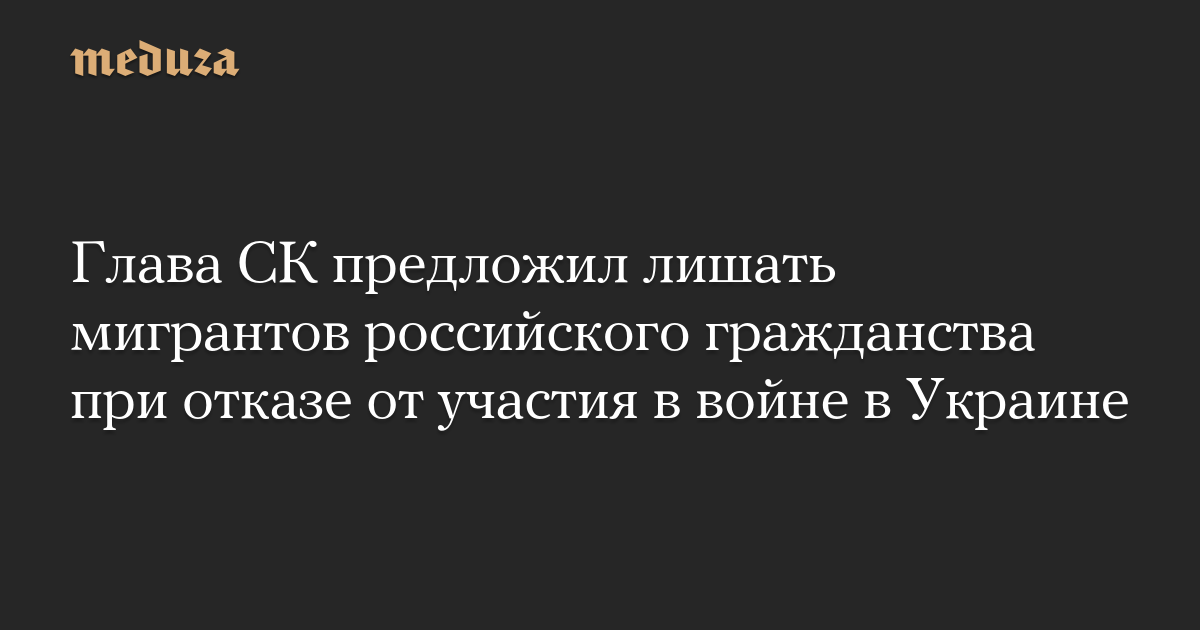 Глава СК предложил лишать мигрантов российского гражданства при отказе от участия в войне в Украине