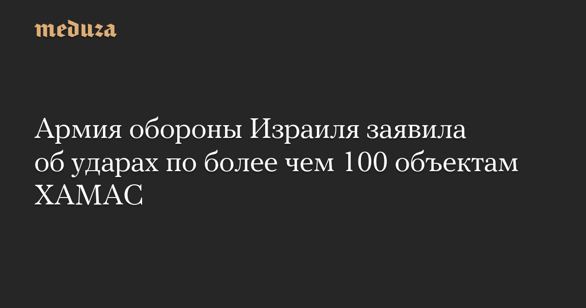 Армия обороны Израиля заявила об ударах по более чем 100 объектам ХАМАС