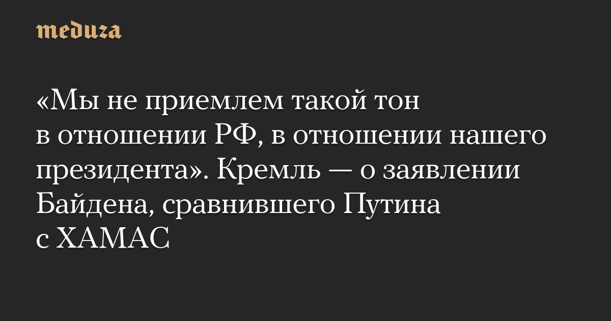 «Мы не приемлем такой тон в отношении РФ, в отношении нашего президента». Кремль — о заявлении Байдена, сравнившего Путина с ХАМАС