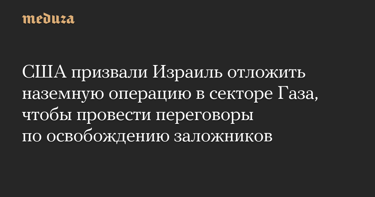 США призвали Израиль отложить наземную операцию в секторе Газа, чтобы провести переговоры по освобождению заложников
