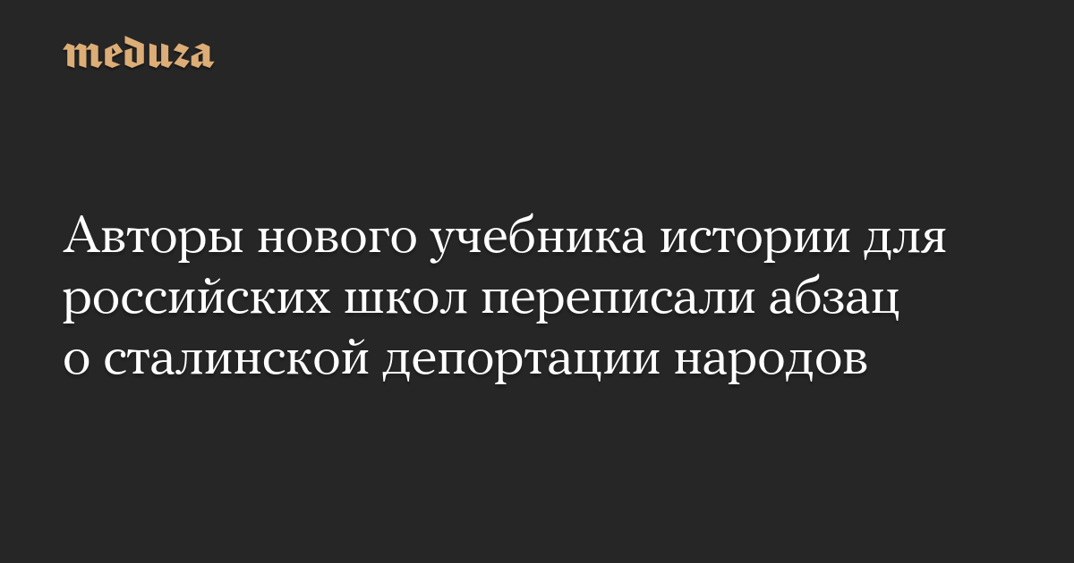 Авторы нового учебника истории для российских школ переписали абзац о сталинской депортации народов