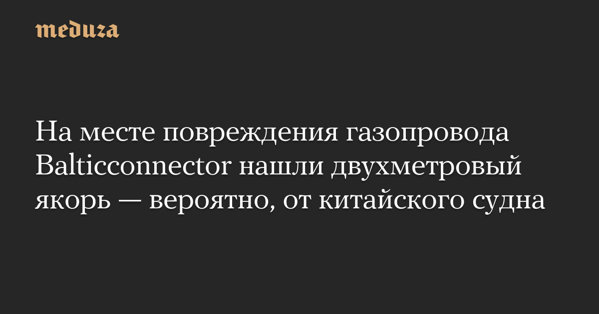 На месте повреждения газопровода Balticconnector нашли двухметровый якорь — вероятно, от китайского судна