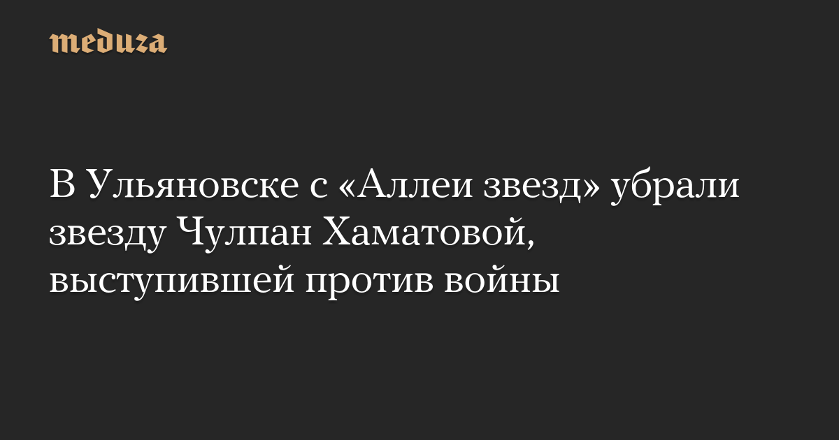 «Они заявляли, что считают неуместным размещение звезды Чулпан Хаматовой на аллее, где также располагаются портреты героев — участников специальной военной операции. Чулпан Хаматова уехала, покинула территорию РФ в связи с вышеуказанными событиями, поэтому министерство приняло решение поддержать данную инициативу, и звезда была демонтирована», — сказала представитель регионального минкульта.