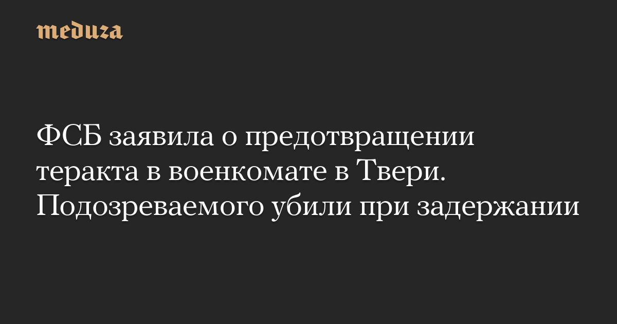 ФСБ заявила о предотвращении теракта в военкомате в Твери. Подозреваемого убили при задержании