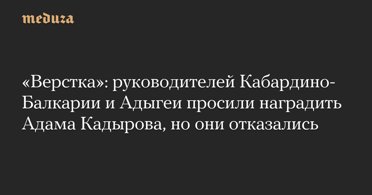 «Верстка»: руководителей Кабардино-Балкарии и Адыгеи просили наградить Адама Кадырова, но они отказались