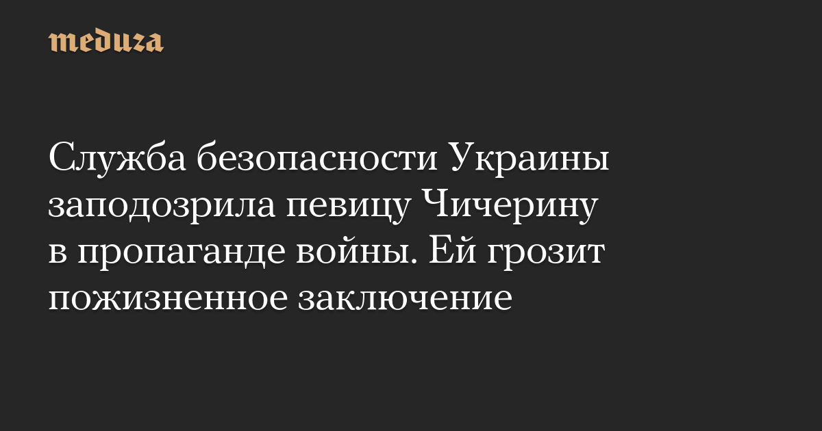 Служба безопасности Украины заподозрила певицу Чичерину в пропаганде войны. Ей грозит пожизненное заключение