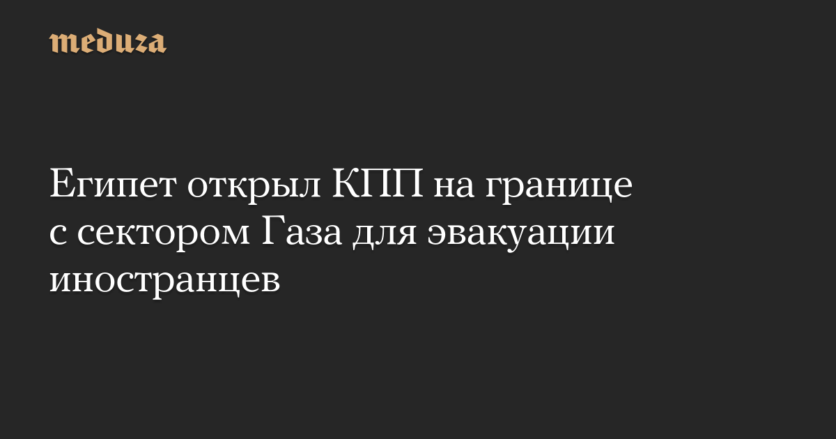 Египет открыл КПП на границе с сектором Газа для эвакуации иностранцев