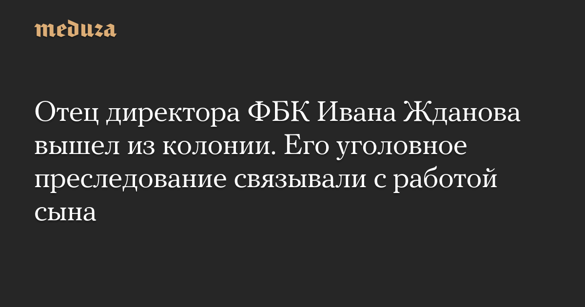 Отец директора ФБК Ивана Жданова вышел из колонии. Его уголовное преследование связывали с работой сына