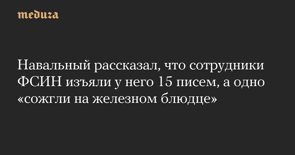 Навальный рассказал, что сотрудники ФСИН изъяли у него 15 писем, а одно «сожгли на железном блюдце»
