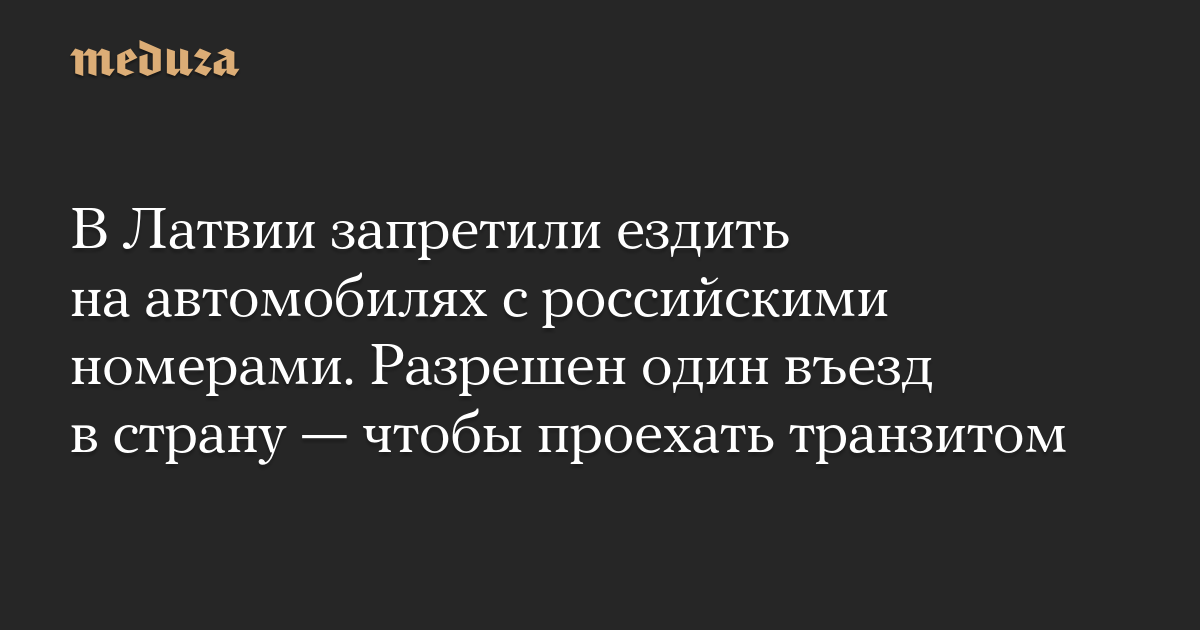 При этом автомобили с российскими номерами смогут проехать через территорию Латвии транзитом, но только один раз. Для этого нужно уведомить Дирекцию безопасности дорожного движения. На транзит отведут не более 24 часов.