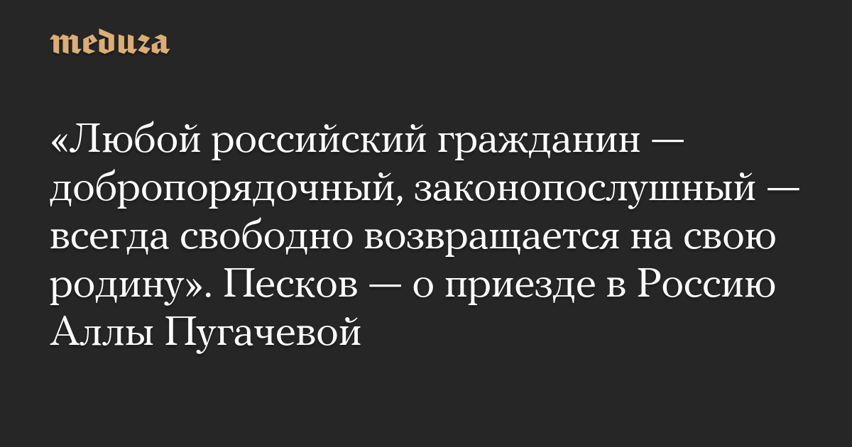 «Любой российский гражданин — добропорядочный, законопослушный — всегда свободно возвращается на свою родину». Песков — о приезде в Россию Аллы Пугачевой