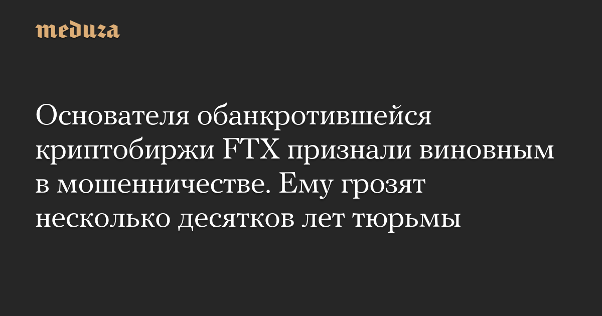 Основателя обанкротившейся криптобиржи FTX признали виновным в мошенничестве. Ему грозят несколько десятков лет тюрьмы