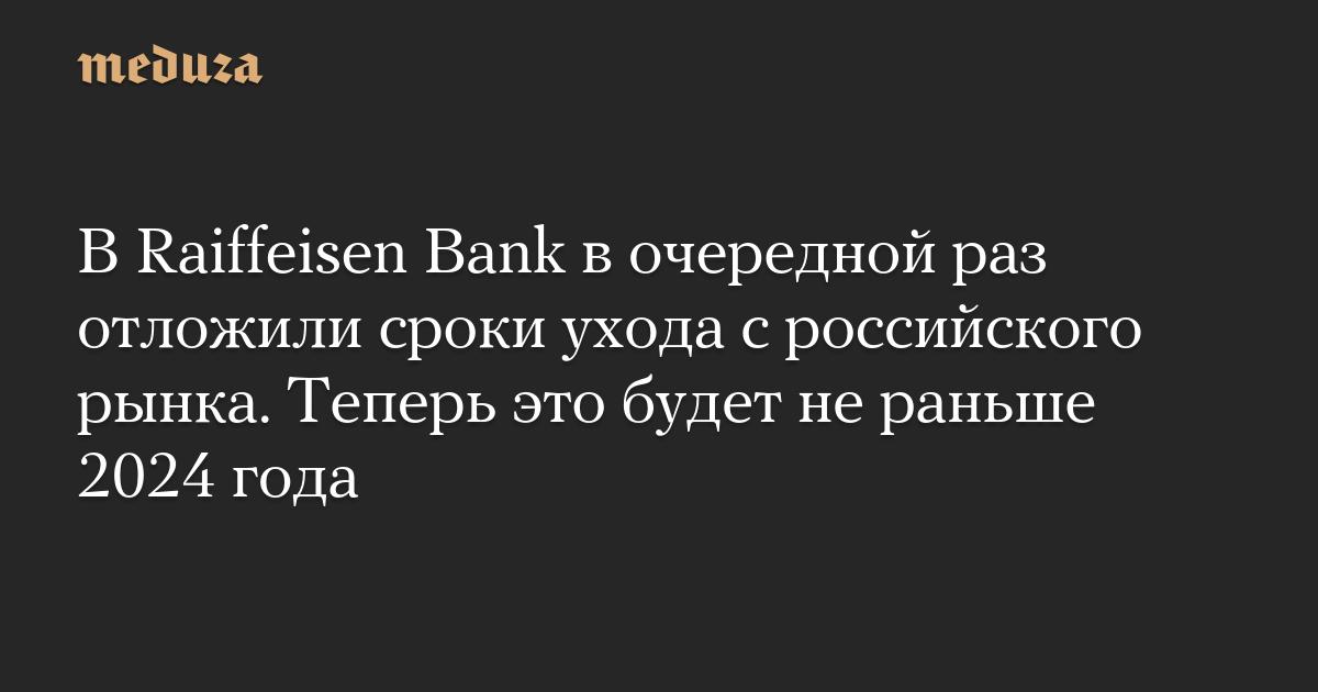В Raiffeisen Bank в очередной раз отложили сроки ухода с российского рынка. Теперь это будет не раньше 2024 года