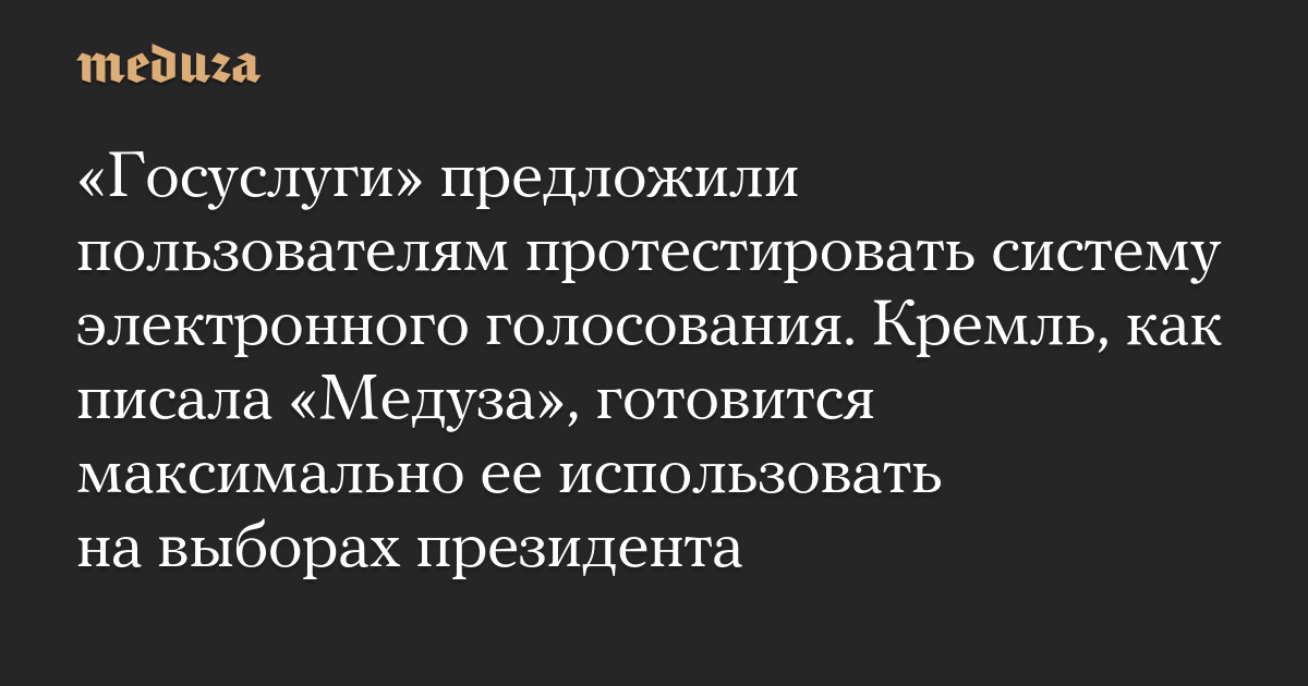 «Госуслуги» предложили пользователям протестировать систему электронного голосования. Кремль, как писала «Медуза», готовится максимально ее использовать на выборах президента