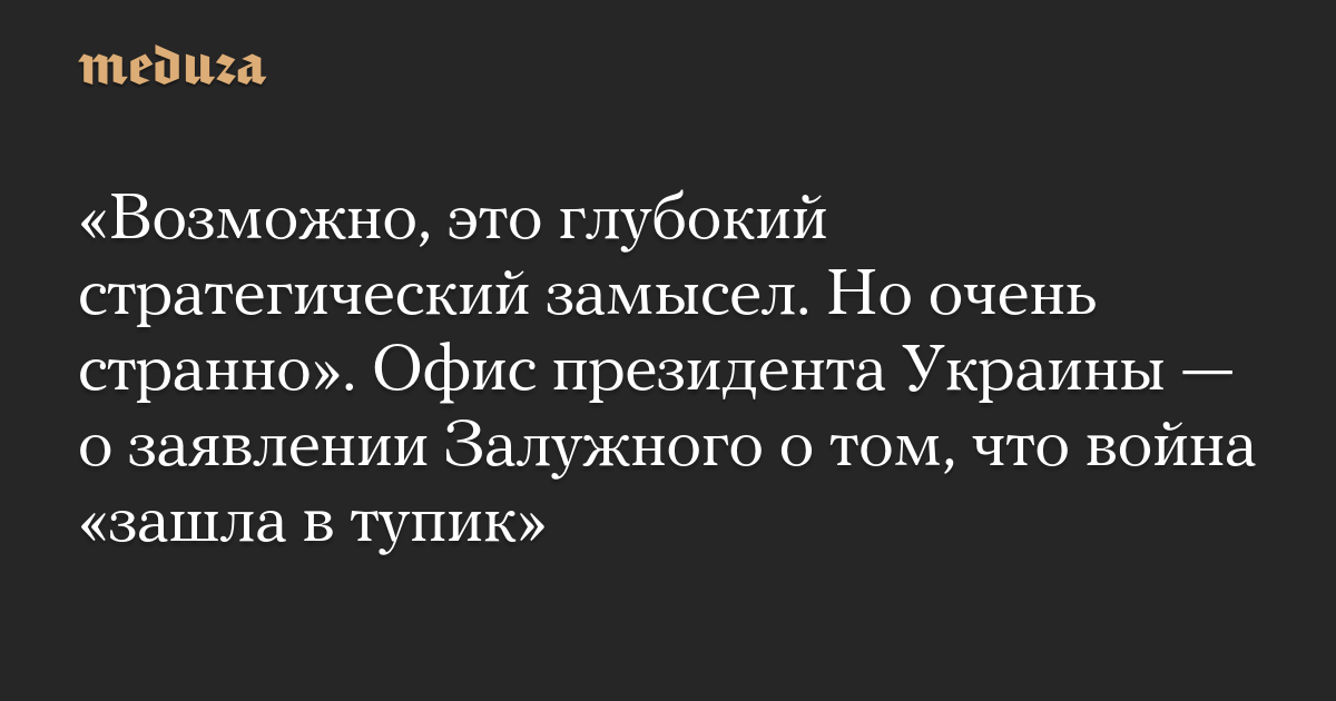 «Возможно, это глубокий стратегический замысел. Но очень странно». Офис президента Украины — о заявлении Залужного о том, что война «зашла в тупик»