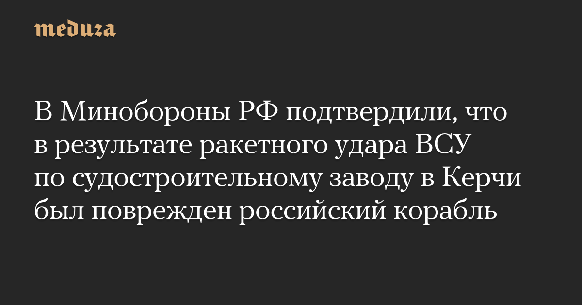 В Минобороны РФ подтвердили, что в результате ракетного удара ВСУ по судостроительному заводу в Керчи был поврежден российский корабль