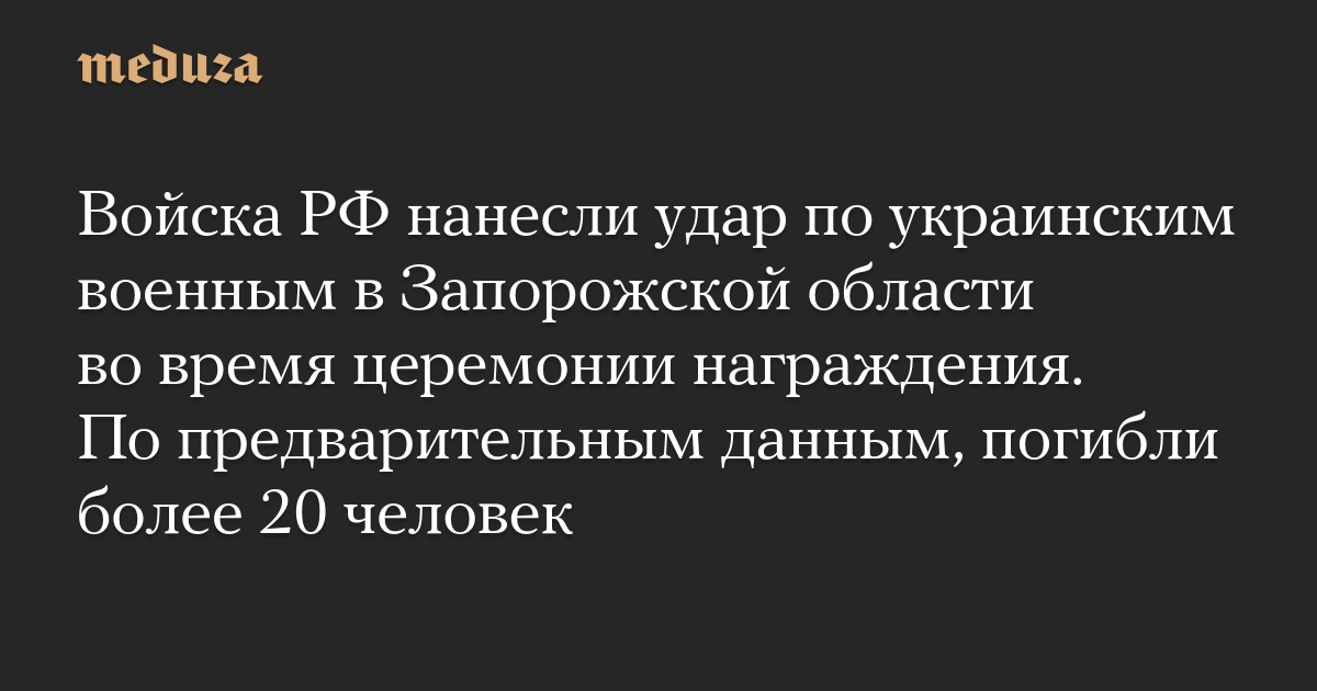 Войска РФ нанесли удар по украинским военным в Запорожской области во время церемонии награждения. По предварительным данным, погибли более 20 человек