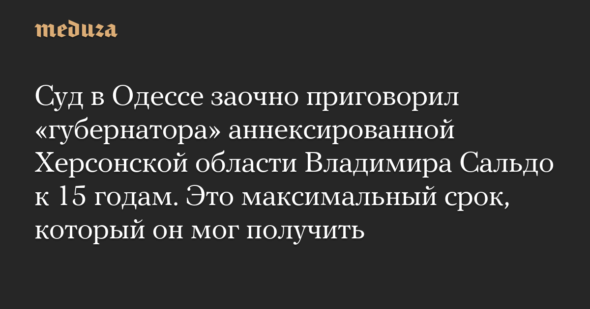 Малиновский районный суд Одессы заочно приговорил «губернатора» аннексированной РФ части Херсонской области Владимира Сальдо к 15 годам лишения свободы с конфискацией имущества.