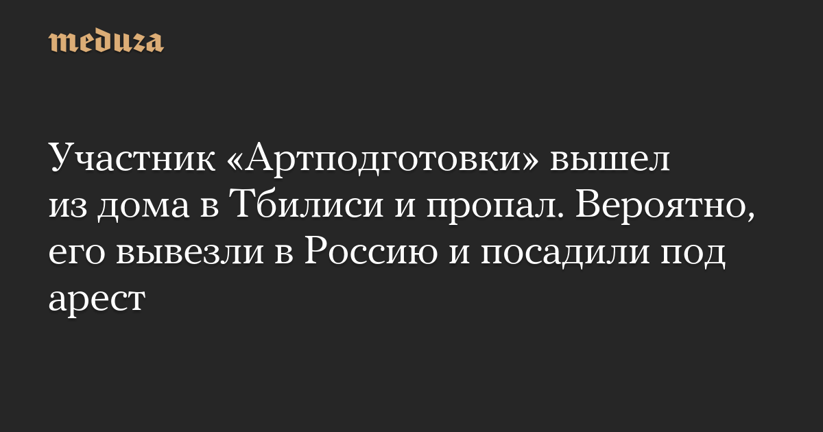 Участник «Артподготовки» вышел из дома в Тбилиси и пропал. Вероятно, его вывезли в Россию и посадили под арест