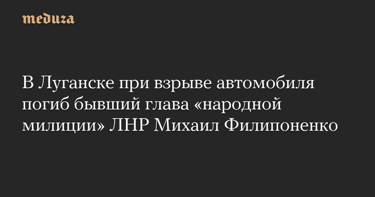 В Луганске взорвали автомобиль депутата «народного совета», бывшего начальника управления «народной милиции» самопровозглашенной ЛНР Михаила Филипоненко. По данным пропагандистского телеканала RT, взрыв произошел возле его дома, Филипоненко погиб.