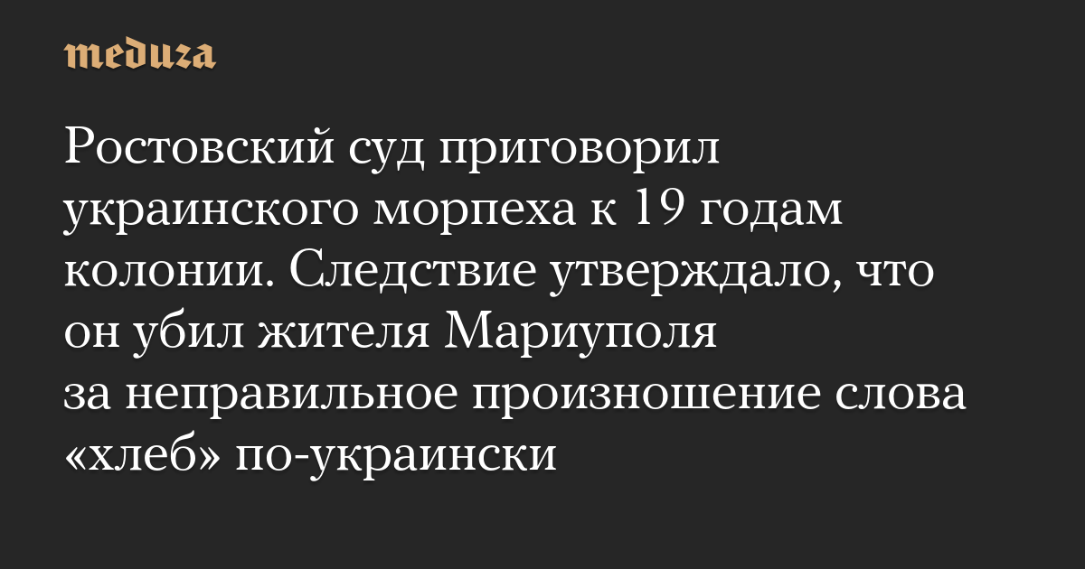 Ростовский суд приговорил украинского морпеха к 19 годам колонии. Следствие утверждало, что он убил жителя Мариуполя за неправильное произношение слова «хлеб» по-украински
