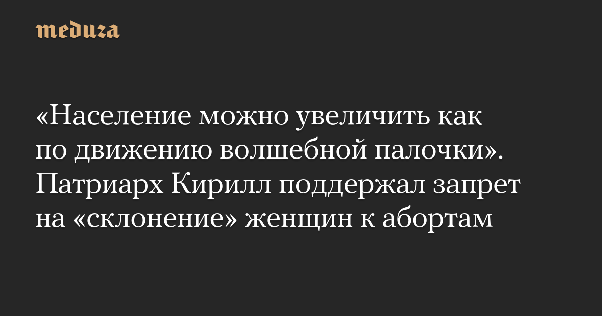 «Население можно увеличить как по движению волшебной палочки». Патриарх Кирилл поддержал запрет на «склонение» женщин к абортам