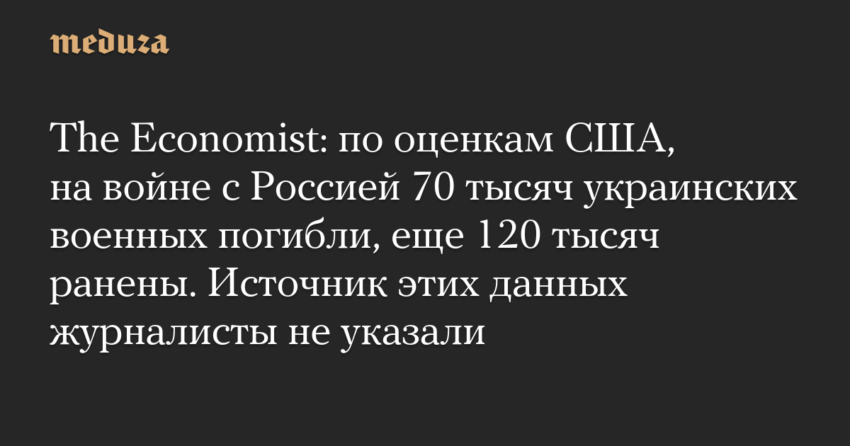 The Economist: по оценкам США, на войне с Россией 70 тысяч украинских военных погибли, еще 120 тысяч ранены. Источник этих данных журналисты не указали