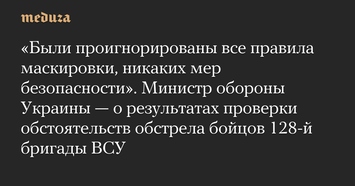«Были проигнорированы все правила маскировки, никаких мер безопасности». Министр обороны Украины — о результатах проверки обстоятельств обстрела бойцов 128-й бригады ВСУ