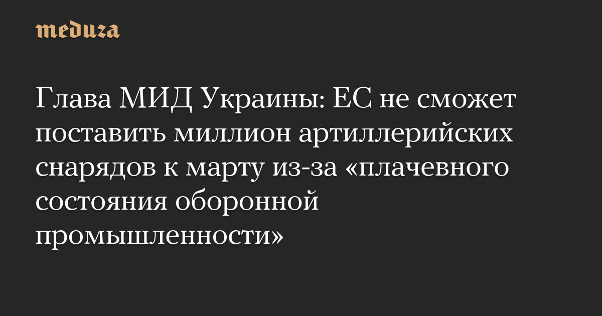 Глава МИД Украины: ЕС не сможет поставить миллион артиллерийских снарядов к марту из-за «плачевного состояния оборонной промышленности»