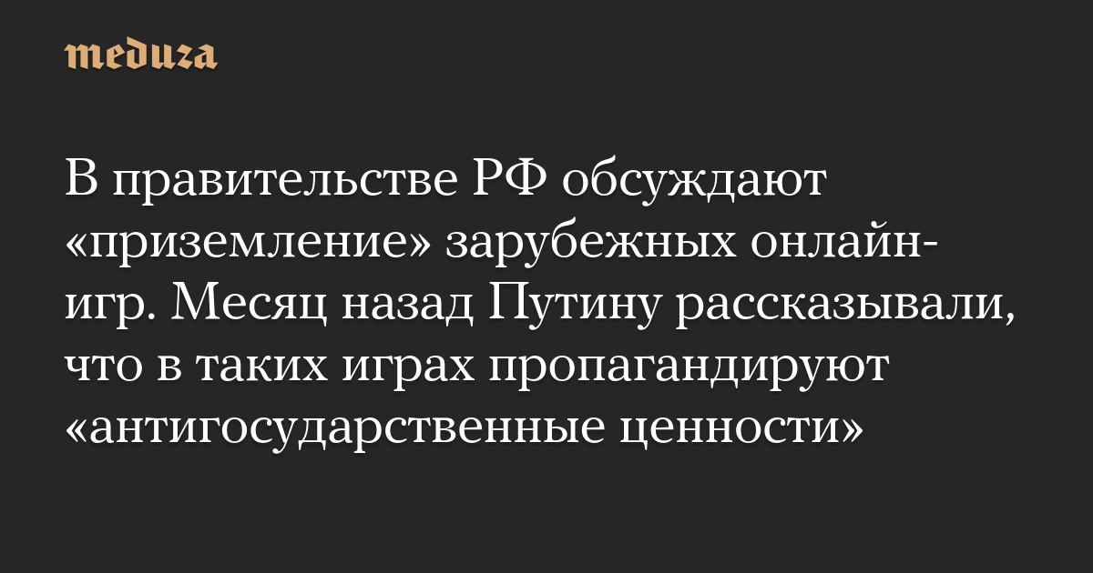 В правительстве РФ обсуждают «приземление» зарубежных онлайн-игр. Месяц назад Путину рассказывали, что в таких играх пропагандируют «антигосударственные ценности»