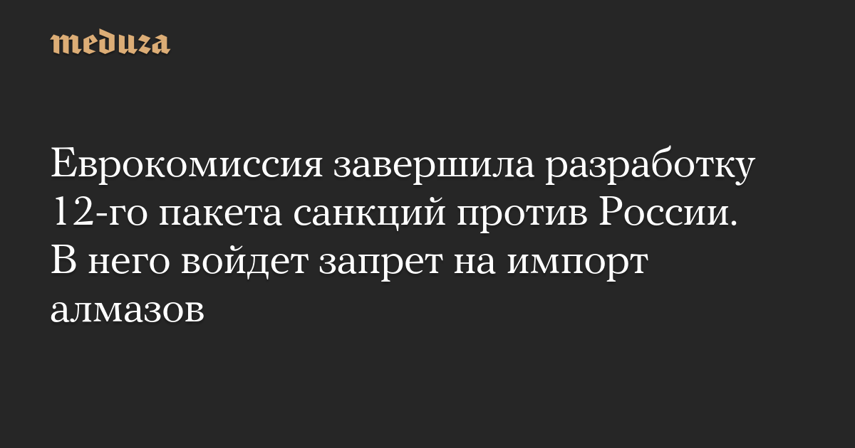 Еврокомиссия завершила разработку 12-го пакета санкций против России. В него войдет запрет на импорт алмазов