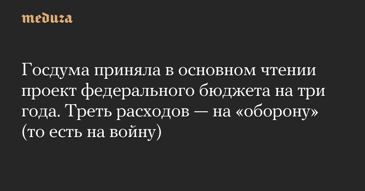 Госдума приняла в основном чтении проект федерального бюджета на три года. Треть расходов — на «оборону» (то есть на войну)