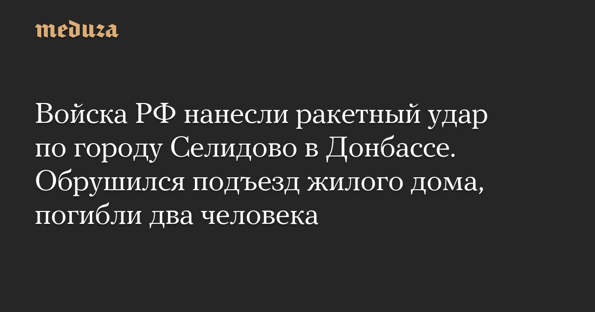 Войска РФ нанесли ракетный удар по городу Селидово в Донбассе. Обрушился подъезд жилого дома, погибли два человека