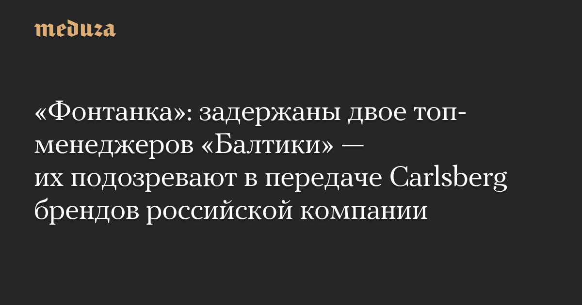 «Фонтанка»: задержаны двое топ-менеджеров «Балтики» — их подозревают в передаче Carlsberg брендов российской компании