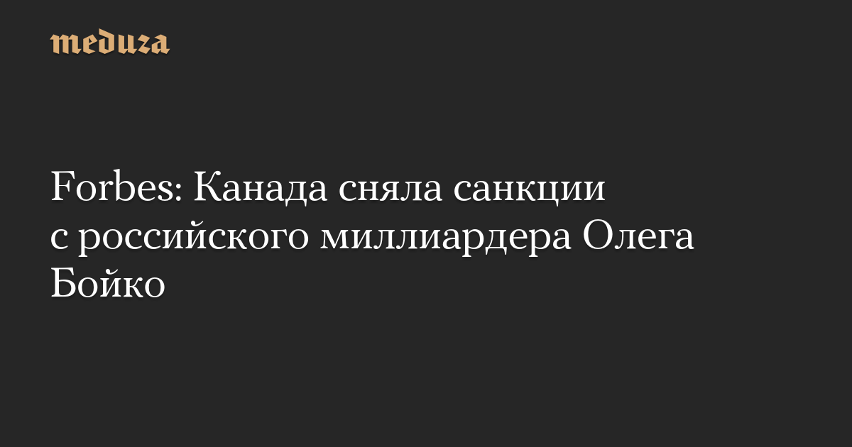 Forbes: Канада сняла санкции с российского миллиардера Олега Бойко