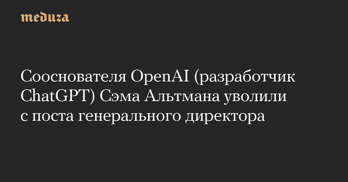 Сооснователя OpenAI (разработчик ChatGPT) Сэма Альтмана уволили с поста генерального директора