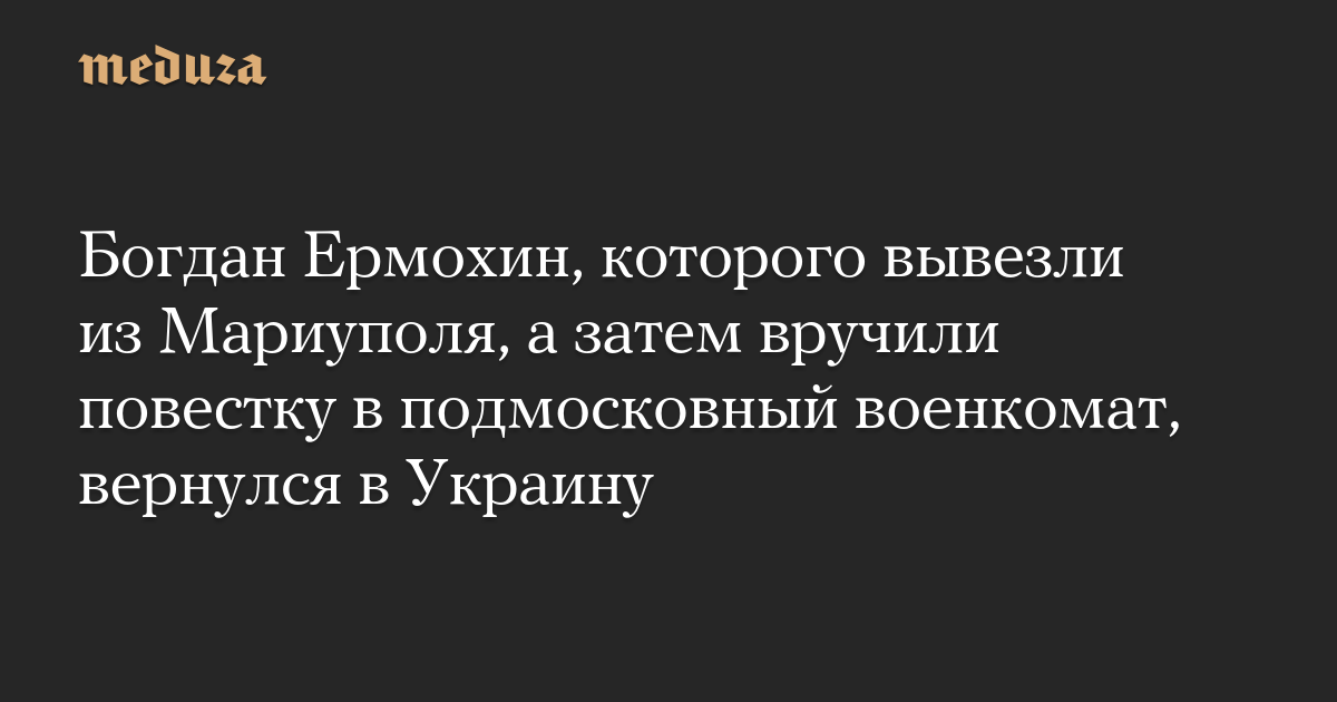 Богдан Ермохин, которого вывезли из Мариуполя, а затем вручили повестку в подмосковный военкомат, вернулся в Украину