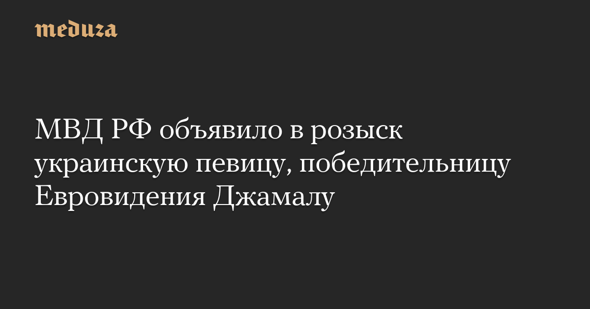 МВД РФ объявило в розыск украинскую певицу крымскотатарского происхождения Сусану Джамаладинову, известную как Джамала, сообщает «Медиазона» со ссылкой на данные из базы ведомства.