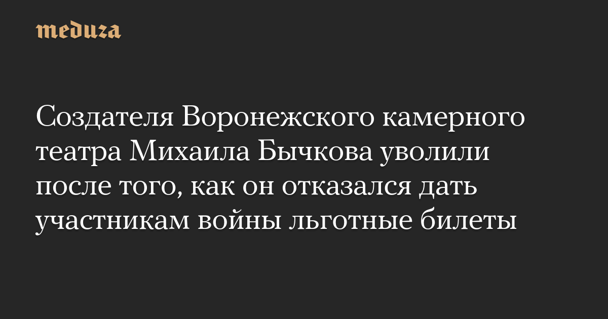 Создателя Воронежского камерного театра Михаила Бычкова уволили после того, как он отказался дать участникам войны льготные билеты