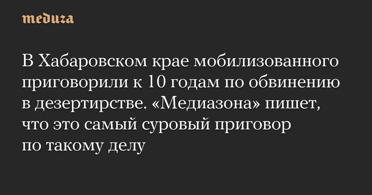 В Хабаровском крае мобилизованного приговорили к 10 годам по обвинению в дезертирстве. «Медиазона» пишет, что это самый суровый приговор по такому делу