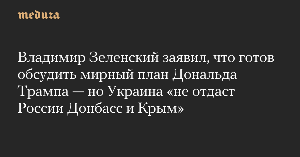 Владимир Зеленский заявил, что готов обсудить мирный план Дональда Трампа — но Украина «не отдаст России Донбасс и Крым»
