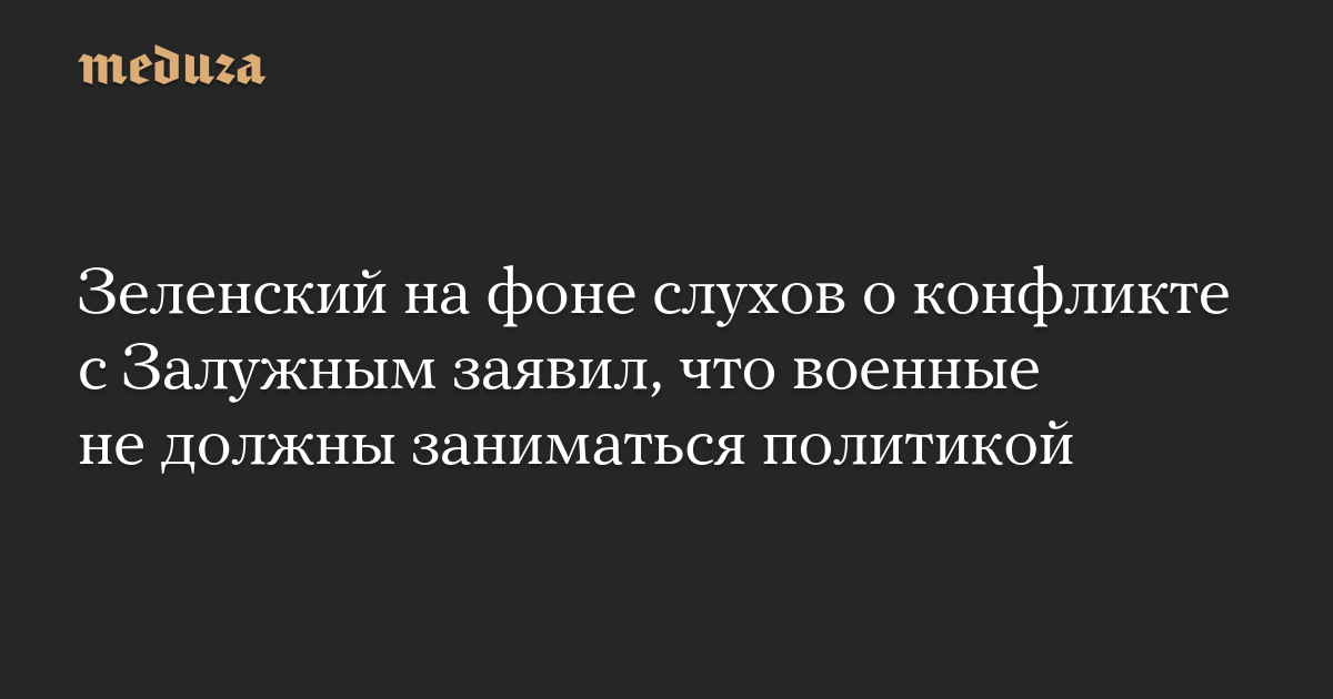 «Если военный решил заняться политикой, на что он имеет право, то тогда ему следует заниматься [только] политикой, поскольку он не сможет заниматься войной. Если ты ведешь войну, думая о том, что завтра уйдешь в политику или баллотируешься на выборах, то тогда и на словах, и на передовой ты будешь вести себя как политик, а не как военный, что, как мне кажется, является большой ошибкой», — заявил Зеленский.