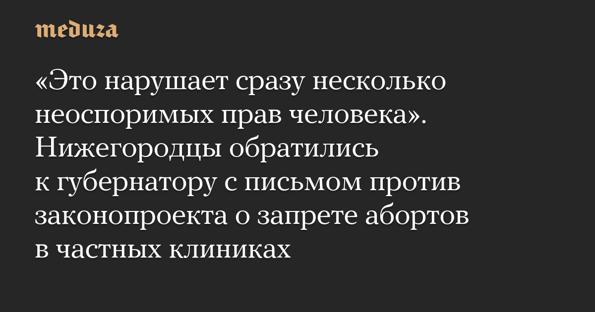 В письме нижегородцы пишут, что «крайне обеспокоены» внесенным документом. Они отмечают, что «принятие такого закона нарушает сразу несколько неоспоримых прав человека», в том числе — право принимать решение относительно того, когда и скольких детей рожать.