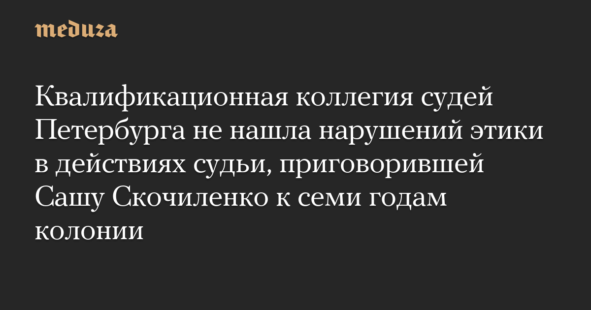 Квалификационная коллегия судей Петербурга не нашла нарушений этики в действиях судьи, приговорившей Сашу Скочиленко к семи годам колонии