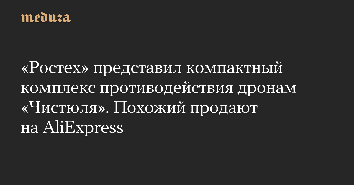 Журналисты «Важных историй» сообщили, что обнаружили на маркетплейсе AliExpress устройство, которое внешне и по характеристикам похоже на разработку «Ростеха». На маркетплейсе представлен комплекс противодействия дронам с радиусом действия до 1000-1500 метров и размерами 32*25*17 сантиметров. Вес китайского комплекса — шесть килограммов, он может работать автономно в течение полутора-двух часов.