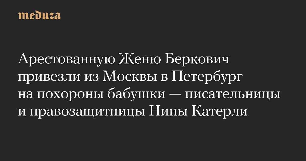 Режиссерку Женю Беркович, арестованную по уголовному делу об «оправдании терроризма», привезли на похороны бабушки Нины Катерли, сообщил депутат петербургского Заксобрания Борис Вишневский.
