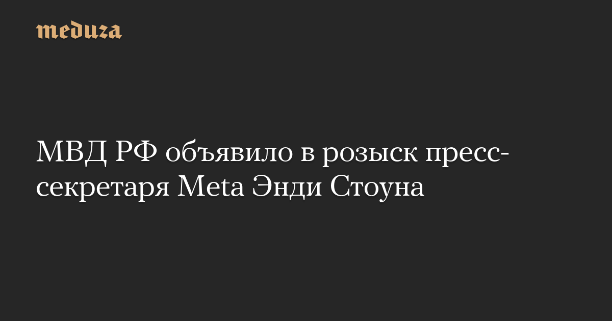 Министерство внутренних дел России объявило в федеральный розыск пресс-секретаря компании Meta Энди Стоуна, сообщает «Медиазона» со ссылкой на базу МВД.
