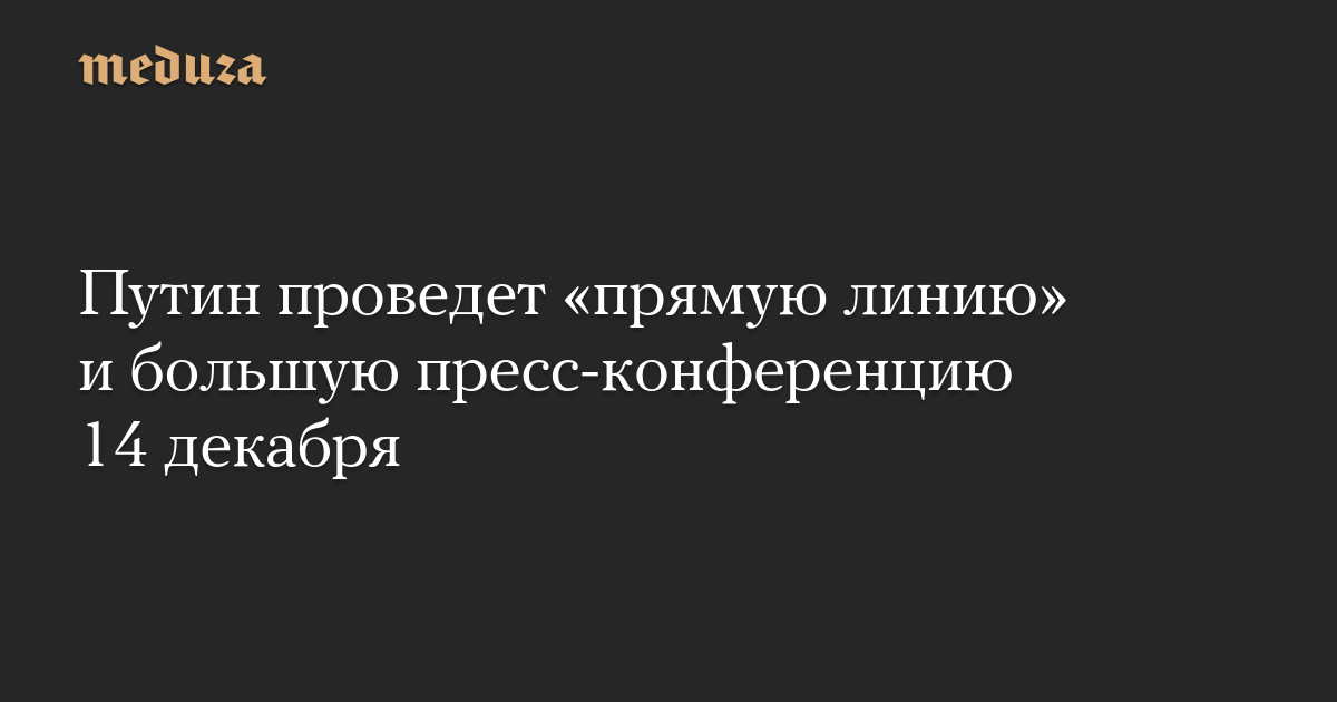 Путин проведет «прямую линию» и большую пресс-конференцию 14 декабря