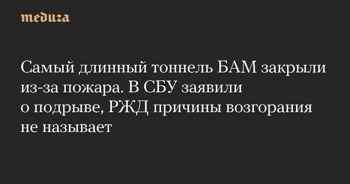 Самый длинный тоннель БАМ закрыли из-за пожара. В СБУ заявили о подрыве, РЖД причины возгорания не называет
