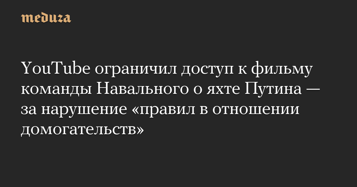 YouTube ограничил доступ к фильму команды Навального о яхте Путина — за нарушение «правил в отношении домогательств»